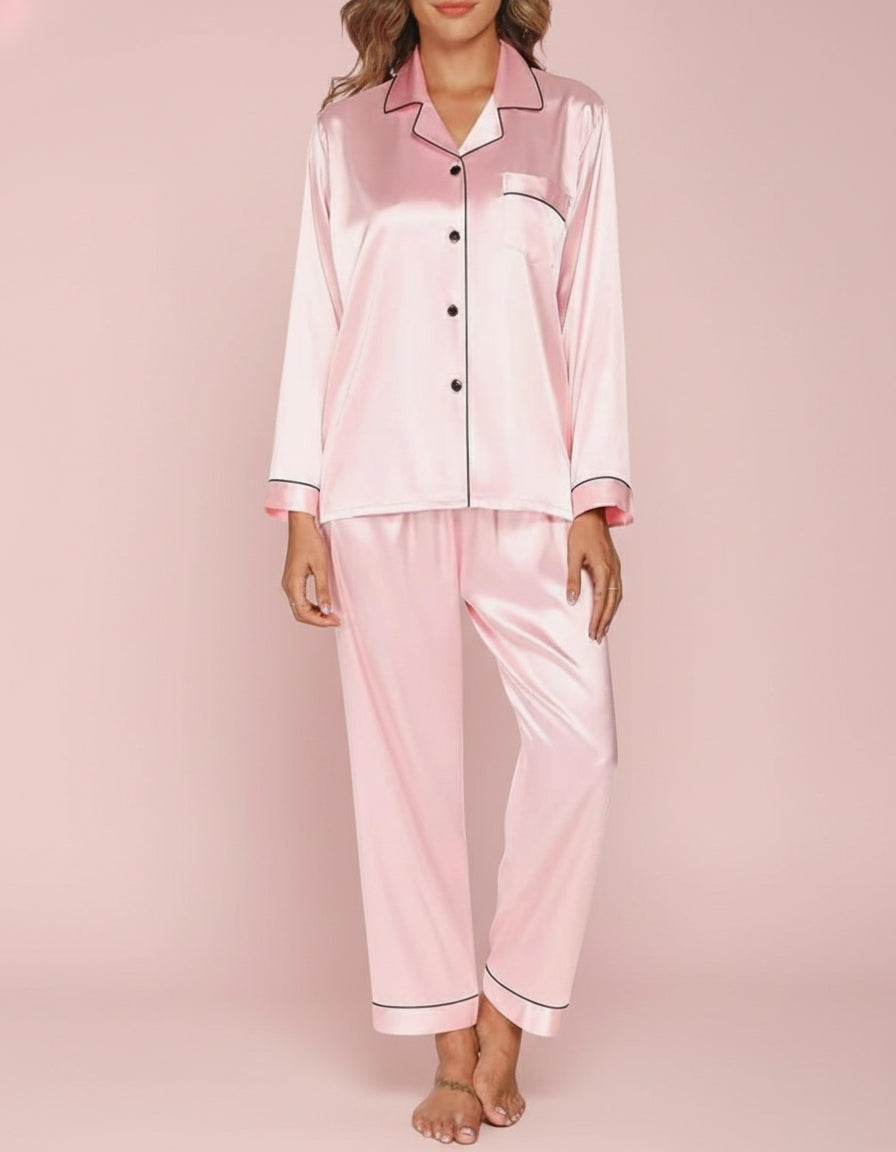 Pyjama effet satin rose